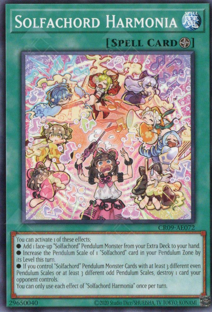 ● If you control “Solfachord” Pendulum Monster Cards with at least 3 different even Pendulum Scales or at least 3 different odd Pendulum Scales, destroy 1 card your opponent controls.