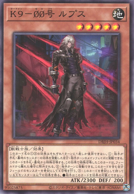 Region: Japanese Card Name: K9 – #ØØ Lupus Code: DBJH-JP034 Rarity: Common Passcode: 10386 Type: Race: Archetype: